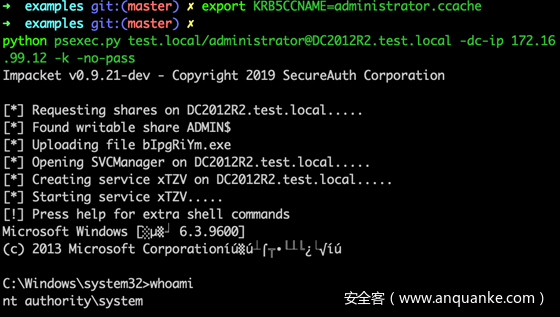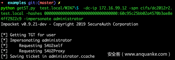 - 发起win7$到dc2012的s4u,通过-impersonate参数模拟用户administrator的票证