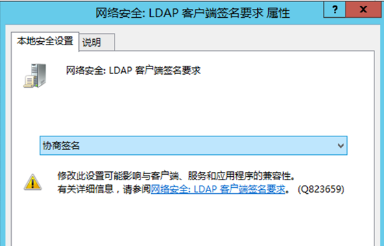 在默认情况底下,ldap服务器就在域控里面,而且默认策略就是协商签名。而不是强制签名。也就是说是否签名是有客户端决定的。服务端跟客户端协商是否签名。(客户端分情况,如果是smb协议的话,默认要求签名的,如果是webadv或者http协议,是不要求签名的)微软公司于 2019-09-11 日发布相关通告称微软计划于 2020 年 1 月发布安全更新。为了提升域控制器的安全性,该安全更新将强制开启所有域控制器上 LDAP channel binding 与 LDAP signing 功能。