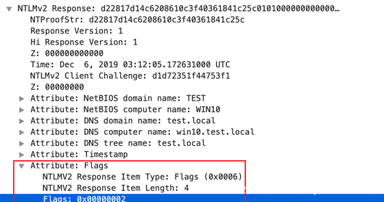 这个标识用于协商服务端是否进行签名,因为发起者是smb协议,默认这个标志位(即NTLMSSPNEGOTIATEALWAYSSIGN和NTLMSSPNEGOTIATE_SIGN)为1,服务端会选择进行签名,但是当我们修改数据包将Flag位置为0的话,微软又设计了一套MIC校验。就是下图这个。它使用带有会话密钥的HMAC-MD5保护所有三个NTLM消息的完整性。如果更改了NTLM消息的Flag位,则MIC将无效并且身份验证将失败。