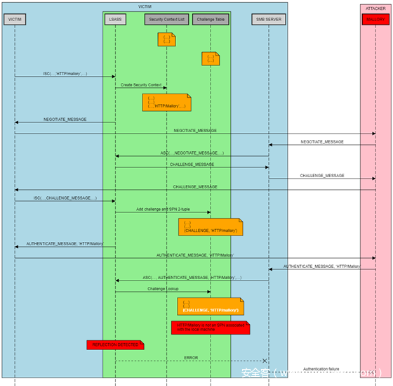 这个漏洞绕过了MS08-068之后,用户不能relay回本机的限制。先来回顾下MS08-068是怎么防止Relay的。