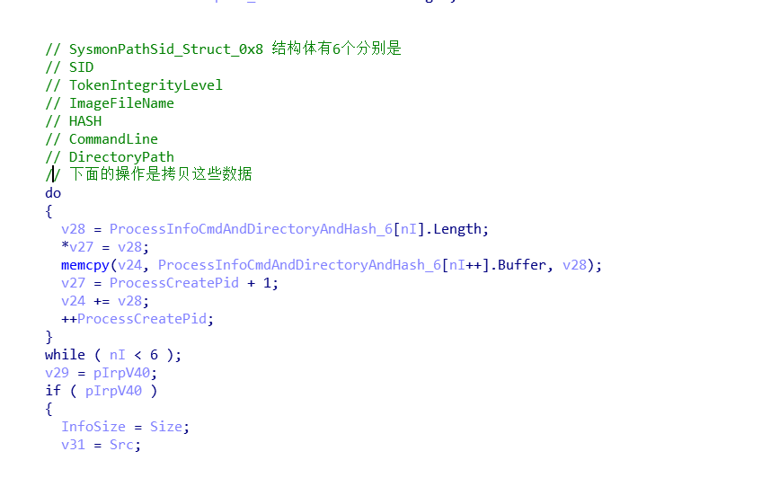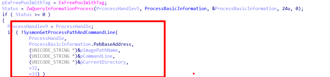然后像Sysmon的驱动发送IoControl码去获取该进程的相关信息,获取哪些信息呢?接下来我们看内核驱动。