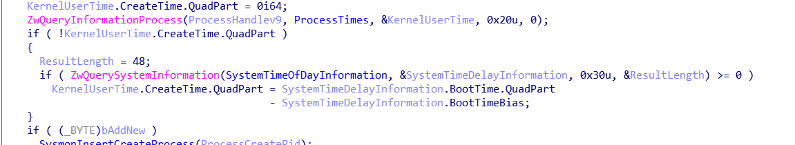 if (!KernelUserTime.CreateTime.QuadPart) {