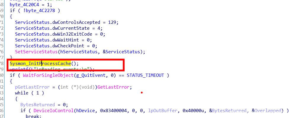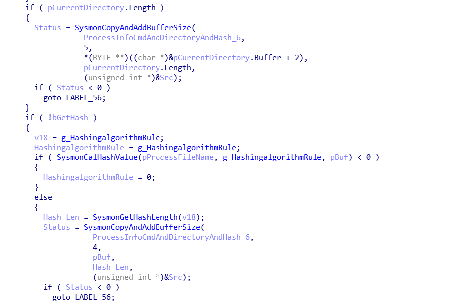 以上是初始化的时候ProcessGuid过程,第二个部分是实时从内核获取进程线程事件后,Sleep(500u);每500毫秒从驱动内获得事件缓冲数据