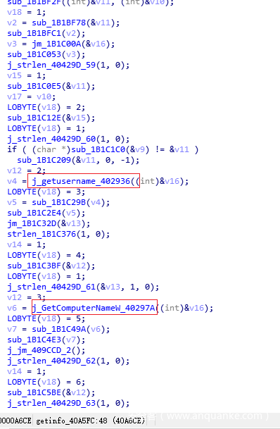接着样本会获取本机的一些信息,如用户名和计算名等,以及一个类似UUID的字符串,随后将这些信息以同样方式加密编码后回传给C2。