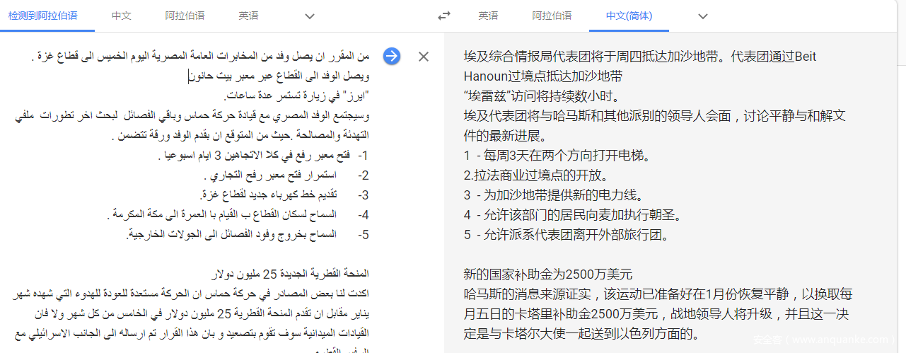 与卡巴斯基于2017年曝光的Gaza Cybergang(Molerats)活动中部分诱饵文档内容高度相似,都与加沙地区和哈马斯相关:
