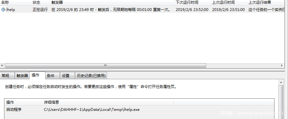 最后设置计划任务启动ihelp.exe,计划任务如下: