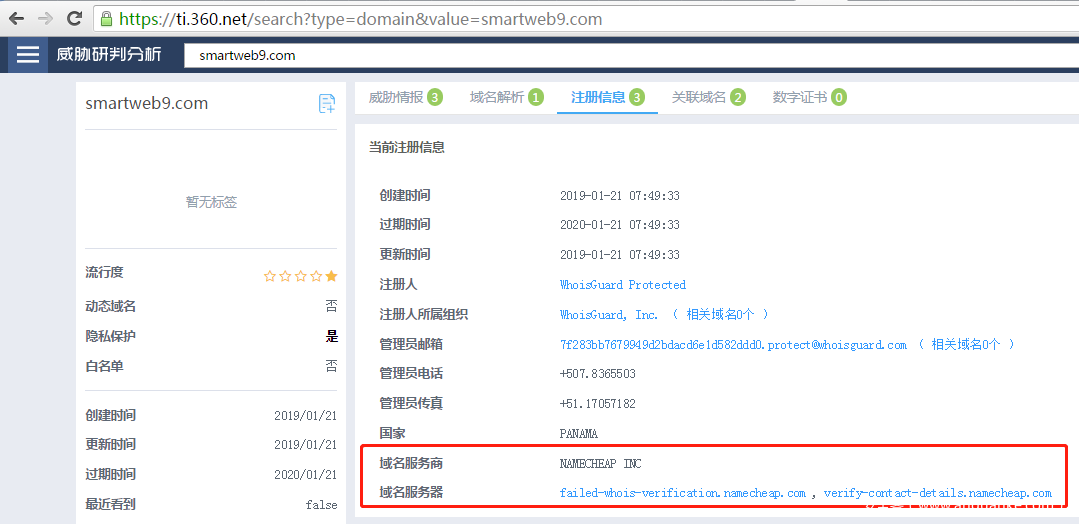 C2域名smartweb9.com同样也是通过Namecheap注册: