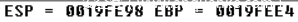 ESP = 0019FEF4