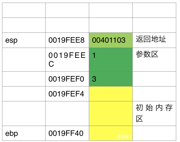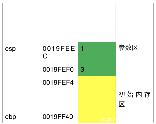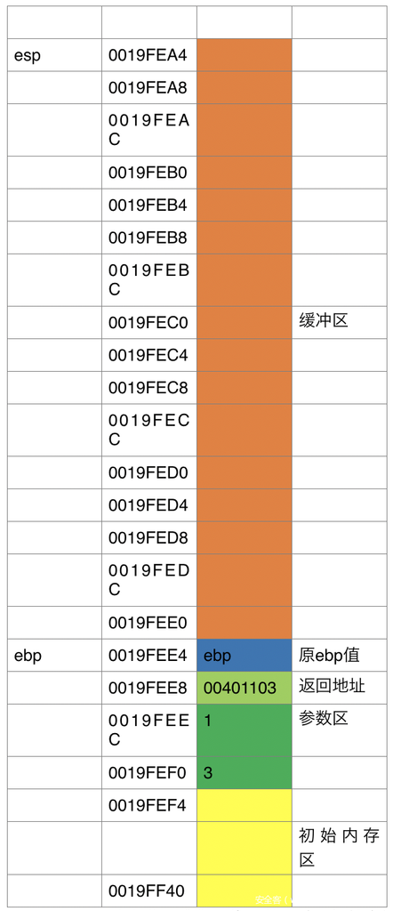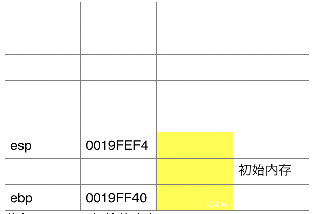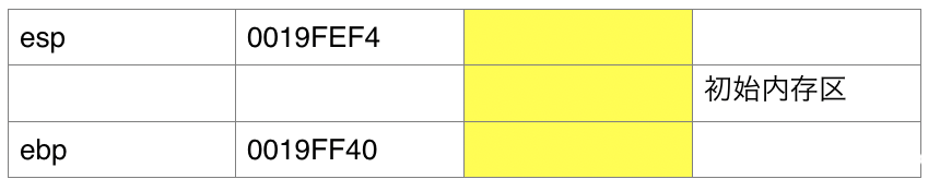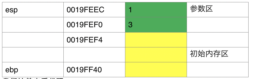 黄色=ebp~esp初始的内存