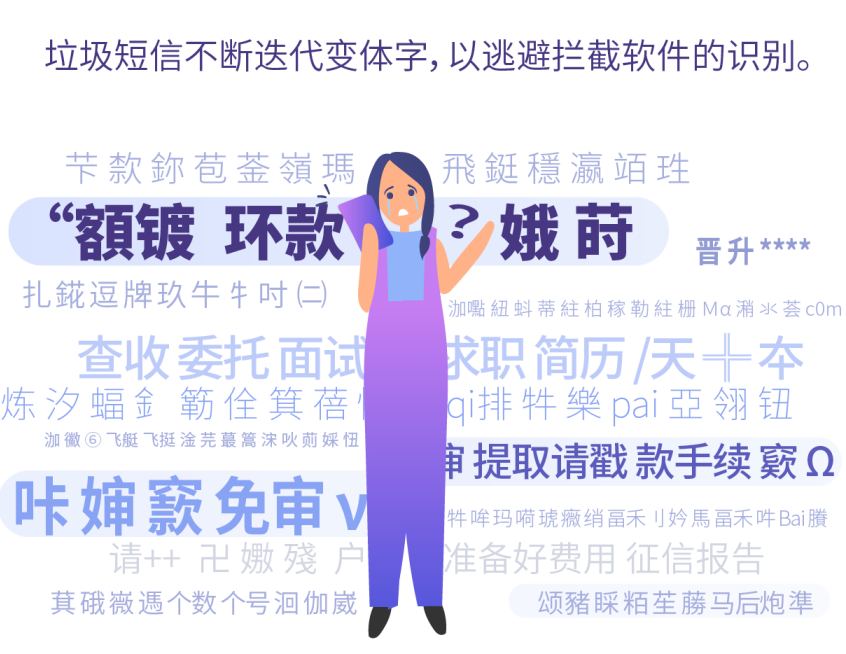 垃圾短信不断迭代变体字,以逃避拦截软件的识别。