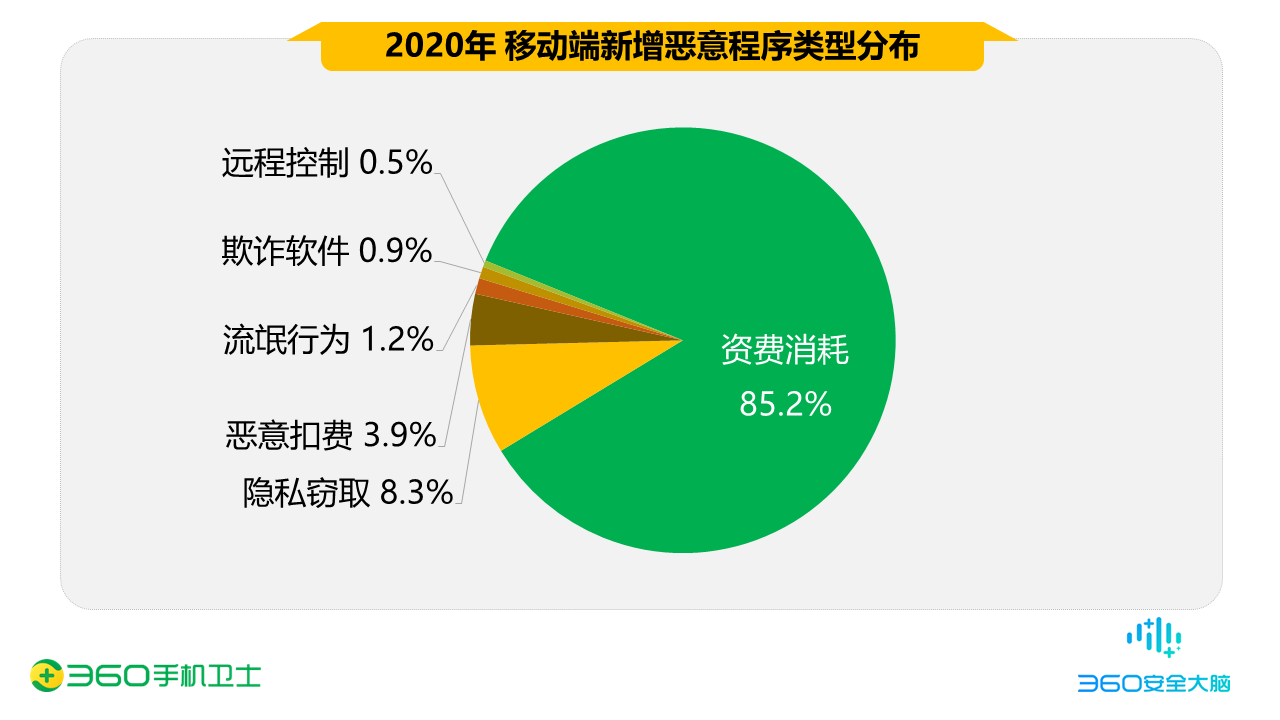 手机端新增恶意程序类型主要为资费消耗,其次为隐私窃取、恶意扣费。