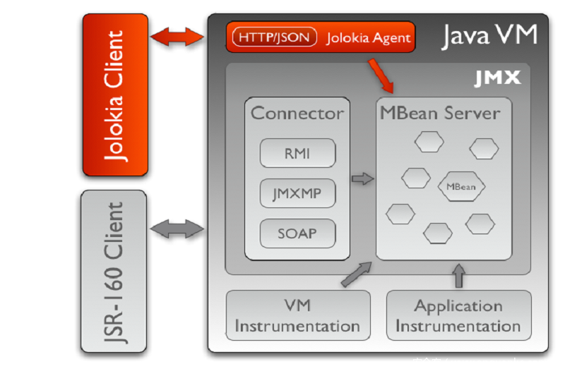 Jolokia 是一个通过 HTTP 的 JMX 连接器,提供了类 RESTful 的操作方式,可以通过 POST JSON 的方式访问和修改 JMX 属性、执行 JMX 操作、搜索 MBean、列出 MBean 的 Meta-data 等。
