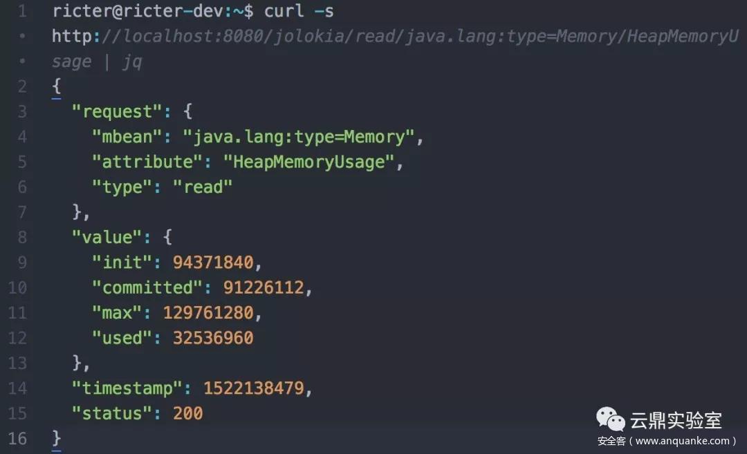通过 Jolokia,可以方便的操作 MBean,通过 GET 的例子: