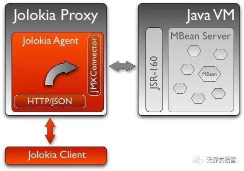 Jolokia 支持一个叫做代理模式(Proxy Mode)的东西,是为了解决不能将 Jolokia Agent 部署在目标平台上的问题。具体架构如下: