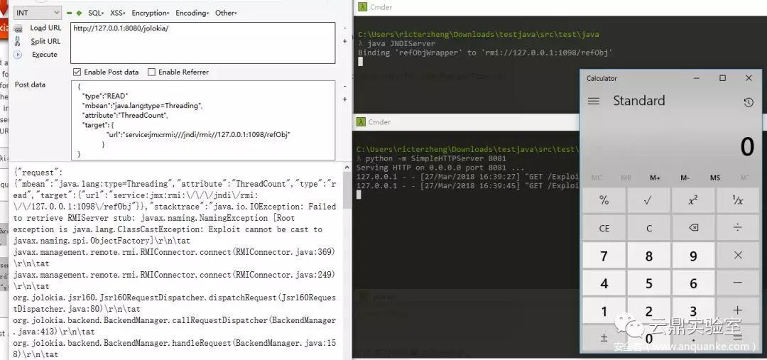 那么,攻击者只需发送一个带有 Evil JMXRMI 的地址的 JSON,即可利用 JNDI 在目标机器上执行命令。