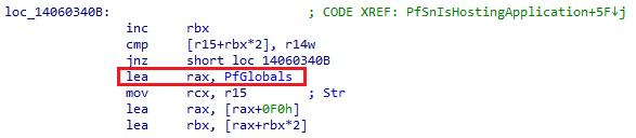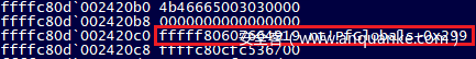 获取该地址后,我们可以轻松找到nt!PfGlobals的地址,但这里存在一个“陷阱”。