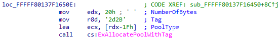 我们可以简单搜索特定池标志,找到BHDrvx64.sys中负责分配此类对象的函数。