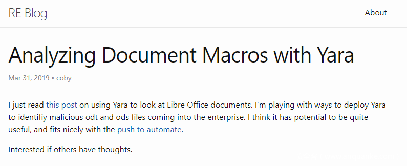 简要内容就是作者开放了一个ods文件宏后门检测的服务,使用yara进行过滤。