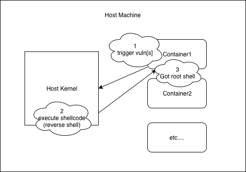 容器的内核与宿主内核共享,使用Namespace与Cgroups这两项技术使容器内的资源与宿主机隔离,所以Linux内核产生的漏洞能导致容器逃逸。