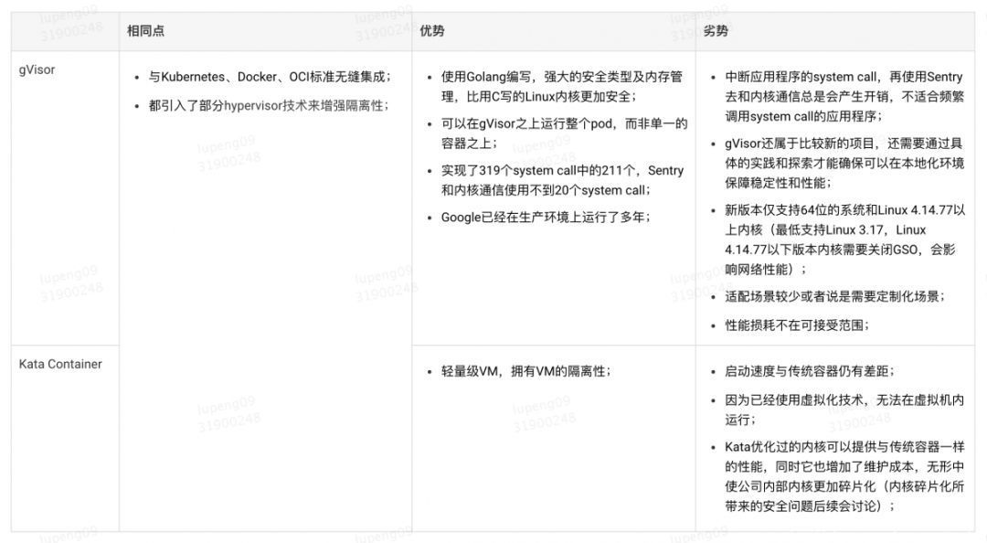 安全容器的技术本质其实就是隔离。gVisor和Kata Container是比较具有代表性的实现方式,当然目前学术界有在探索基于Intel SGX的安全容器。