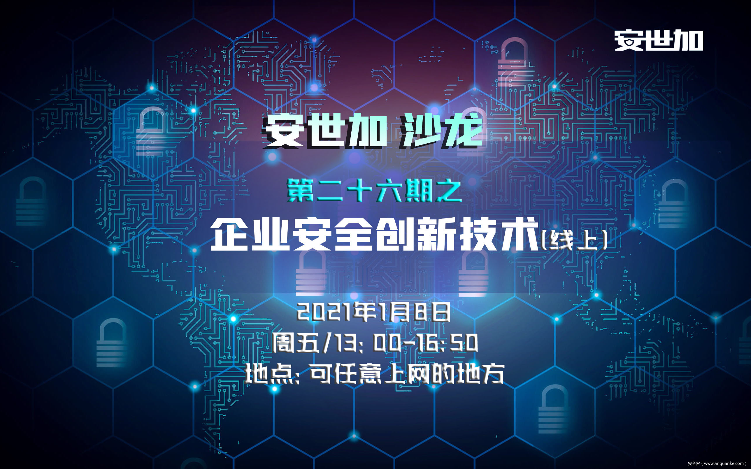 互联网创新是技术产业发展的核心,也是一家企业放眼未来的根本。在复杂且碎片化的网络安全产业,创新力更是一家企业安身立命的基础,它为企业的其他部门提供关键的保障。如今,网络安全行业为了应对各种不断迭代的攻击技术,创新应用层出不穷。2021年1月8日,安世加力邀数位资深企业安全专家,聚焦当下前沿的企业安全创新议题,为大家带来第二十六期企业安全创新技术沙龙(线上),旨在为行业提供更多的实践与经验的借鉴。