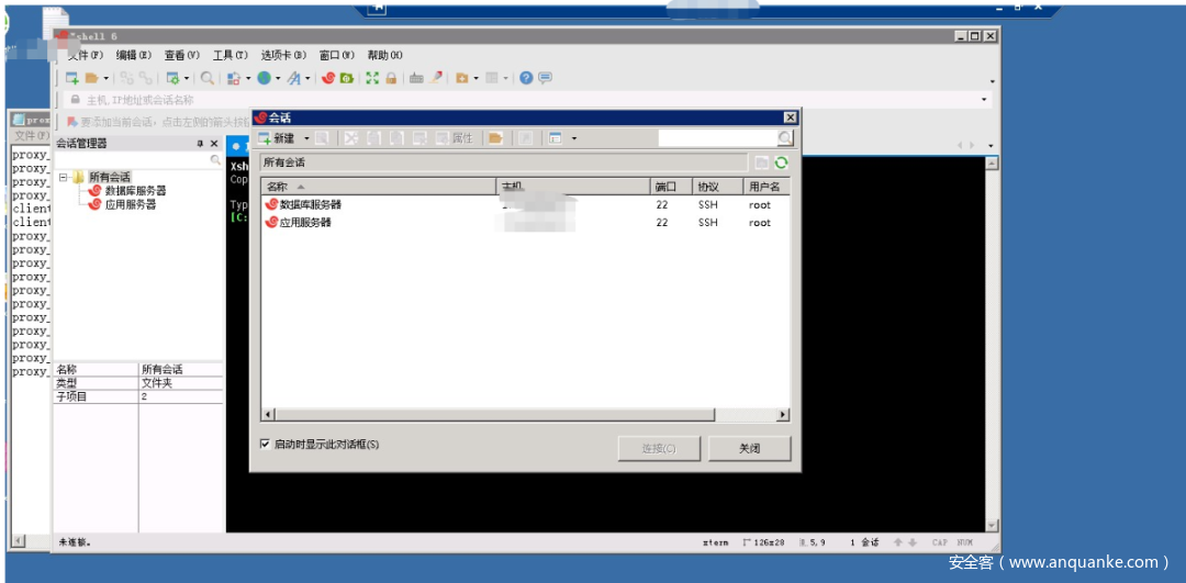 先登录第一个终端,使用命令对ssh进行监听,因为比较懒就不破解xshell得配置文件(其实是没破出来,只能这样了),读取密码。