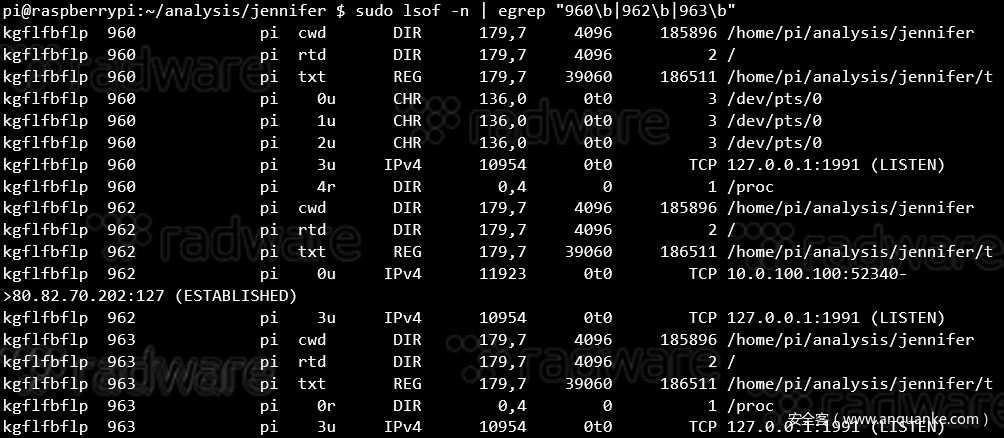 跟Mirai一样,这三个进程名称经过了混淆处理,而且恶意软件还采用了一些反调试检测方法来防止恶意代码在调试器中被分析。进程信息以及相对应的端口+协议如下所示:
