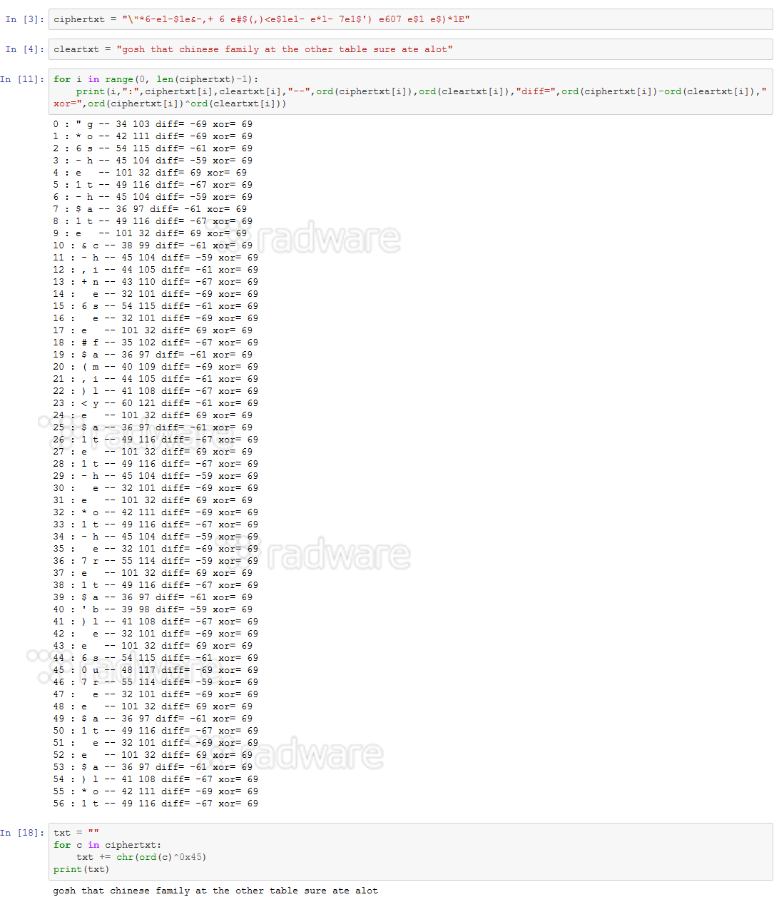 使用Python进行一些非常基本的密码学分析之后,我们发现这里的混淆算法其实就是简单的异或计算(固定密钥为0x45):