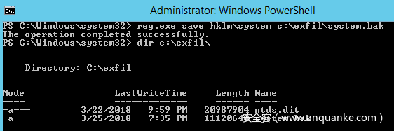 除了活动目录数据库之外,我们还需要提取出SYSTEM注册表hive: