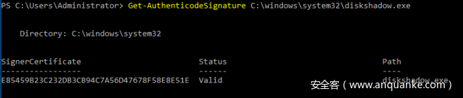 实际上,DiskShadow的代码是由微软官方签名的,而且Windows Server 2008、Windows Server 2012和Windows Server 2016中都包含了DiskShadow: