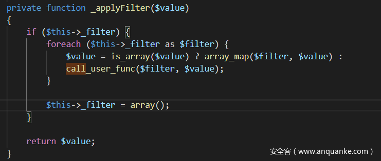 链子到这里基本结束了,这里调用了call_user_func,而两个参数都是我们可控的,所以直接就能够RCE。