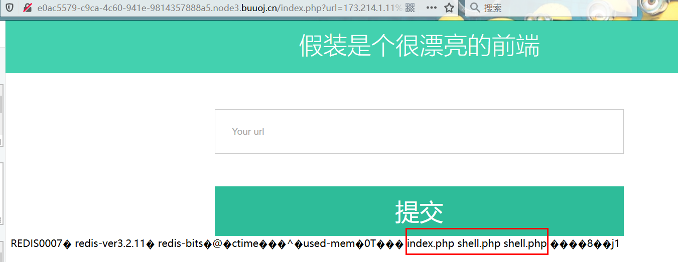 注意:ip应为内网存在redis服务的ip,而并非现在这个开放80端口的机子ip,访问的时候也是访问前者的ip/shell.php文件