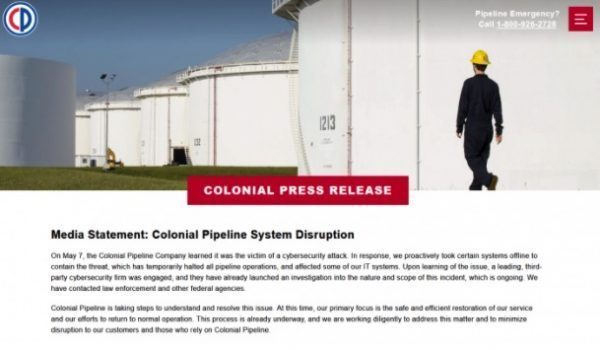 2021年5月7日(美国当地时间),美国最大成品油管道运营商Colonial Pipeline遭到网络攻击,此次攻击事件导致提供美国东部沿海主要城市45%燃料供应的输送油气管道系统被迫下线。极大影响了美国东海岸燃油等能源供应,美国政府宣布进入国家紧急状态。最终Colonial Pipeline支付了将近500万美元的赎金以恢复被攻击的系统。本次攻击成为美国能源系统有史以来遭遇的最严重网络袭击。