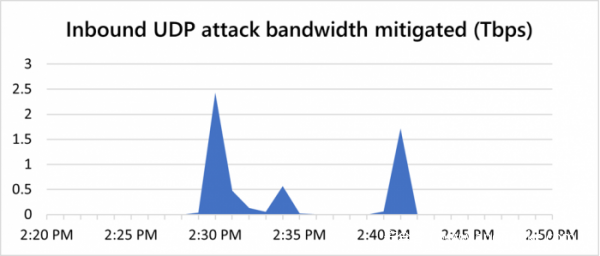 微软披露其已经缓解了一场发生于8月份的2.4Tbps分布式拒绝服务(DDoS)攻击。这次攻击针对欧洲的一个Azure客户,比微软在2020年记录的最高攻击带宽量高出140%。它也超过了之前最大的攻击2.3Tbps的峰值流量,这是在去年针对亚马逊网络服务的攻击。亚马逊网络服务(AWS)之前保持着最大的DDoS攻击防御的记录,也就是上面所说的2.3Tbps的尝试,超过了NetScout Arbor在2018年3月保持的1.7Tbps的前记录。