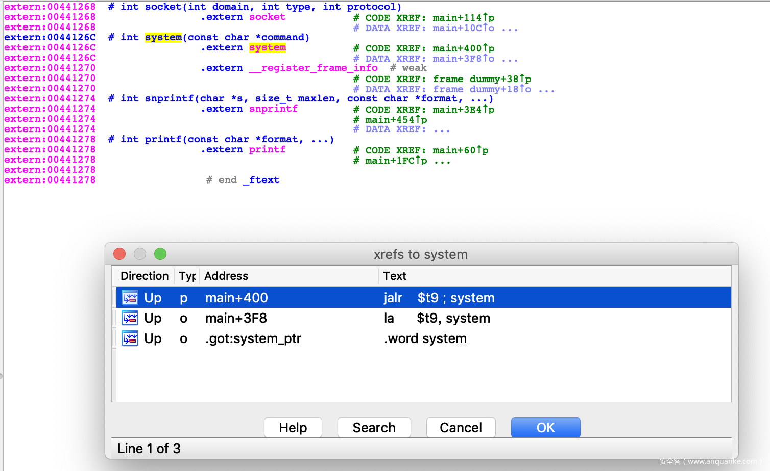 首先我们知道这是一个命令执行,我们先搜索system函数,看交叉引用,我们可以得到这就只有一个