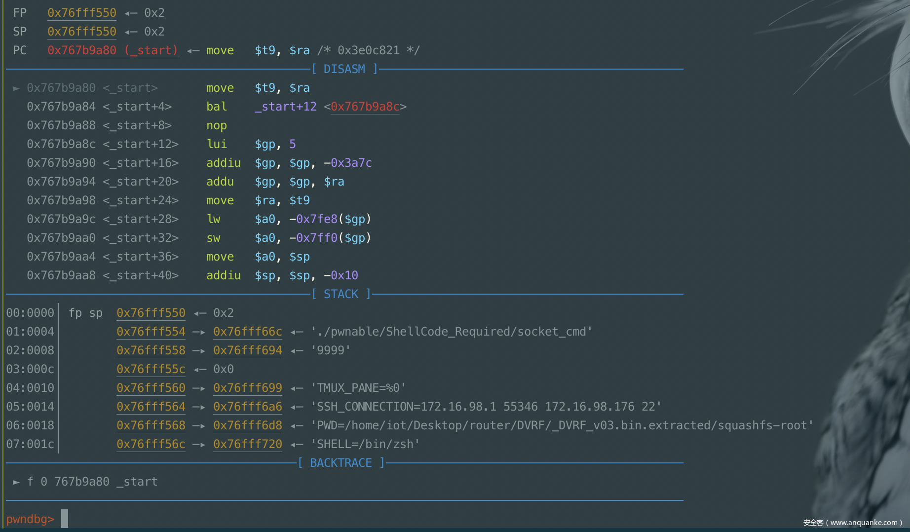 ./qemu -L ./ -g $PORT ./pwnable/ShellCode_Required/socket_cmd 9999