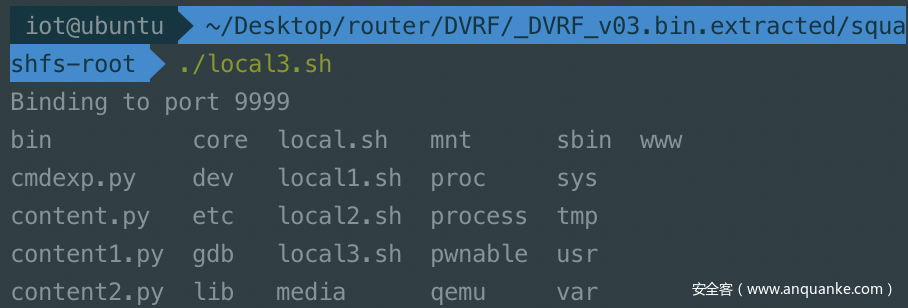 我们运行脚本,看到在模拟端成功的返回了ls的结果,如下:
