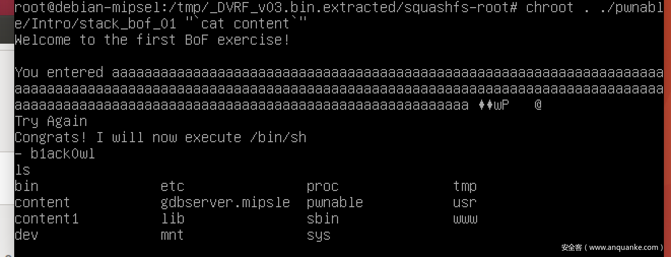 可以看到确实是执行的我们输入的命令,但是在qemu端提示:bash not found,说明本地并没有bash指令。