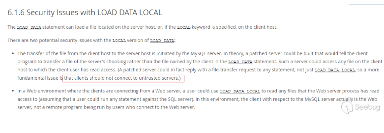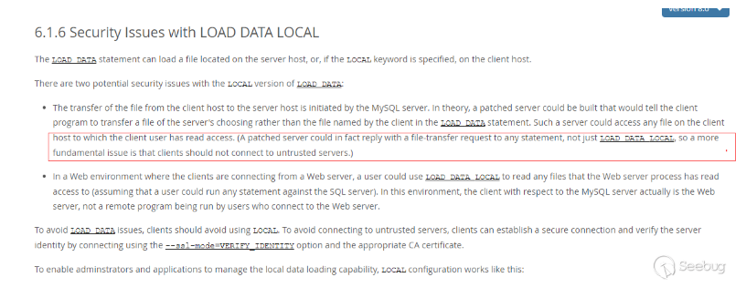 在mysql文档中的说到,服务端可以要求客户端读取有可读权限的任何文件。