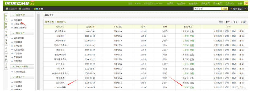 dedecms 后台,模块管理,安装UCenter模块。开始配置