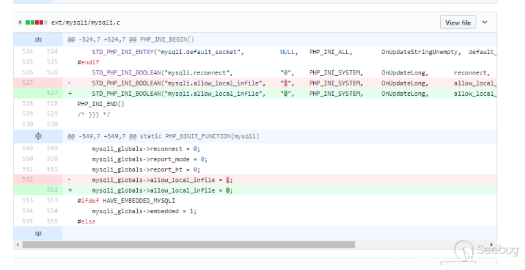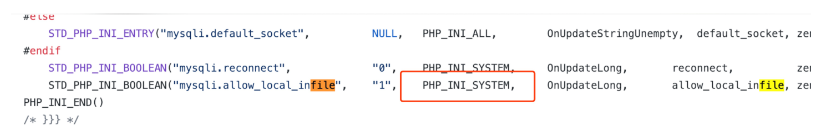 实际上是因为mysqli_real_connect在执行的时候,会初始化allow_local_infile。在php代码底层mysqli_real_connect实际是执行了mysqli_common_connect。而在mysqli_common_connect的代码中,设置了一次allow_local_infile。