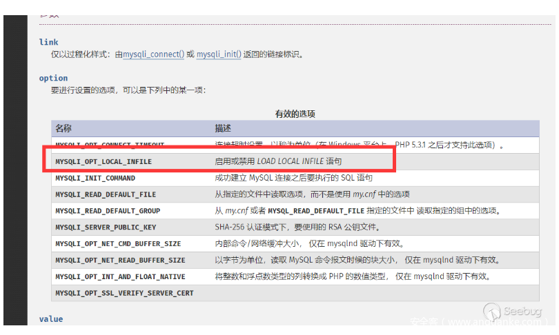 如果在mysqli_real_connect之前设置mysql_option,其allow_local_infile的配置会被覆盖重写,其修改就会无效。