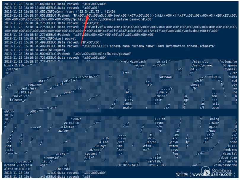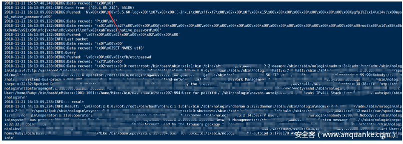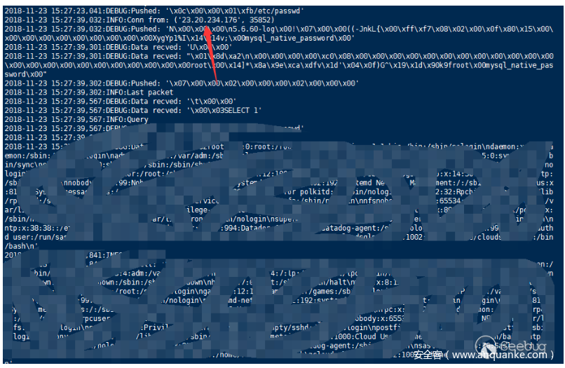 探针在深入挖掘这个漏洞的过程中,第一时间想到的利用方式就是mysql探针,但可惜的是,在测试了市面上的大部分探针后发现大部分的探针连接之后只接受了greeting包就断开连接了,没有任何查询,尽职尽责。