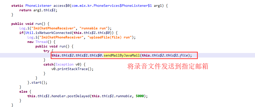后台开启服务将通话录音发送到指定邮箱: